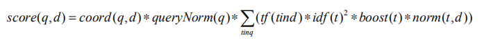 • 查询规范:基于查询的规范化因子,由每个查询词条比重的平方之和计算而成。查询规范用于查询之间的得分比较,但这并不一定很容易,有时甚至做不到。