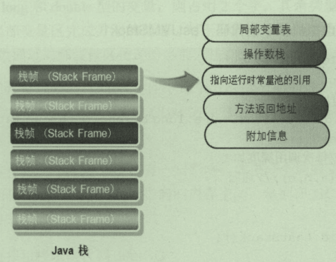 虚拟机栈在运行时使用一种叫作栈帧的数据结构保存上下文数据,栈帧里面存放了方法的局部变量表、操作数栈、动态连接方法和返回地址等信息。每一个方法的调用都伴随着栈帧的入栈操作,相应地,方法的返回则表示栈帧的出栈操作。