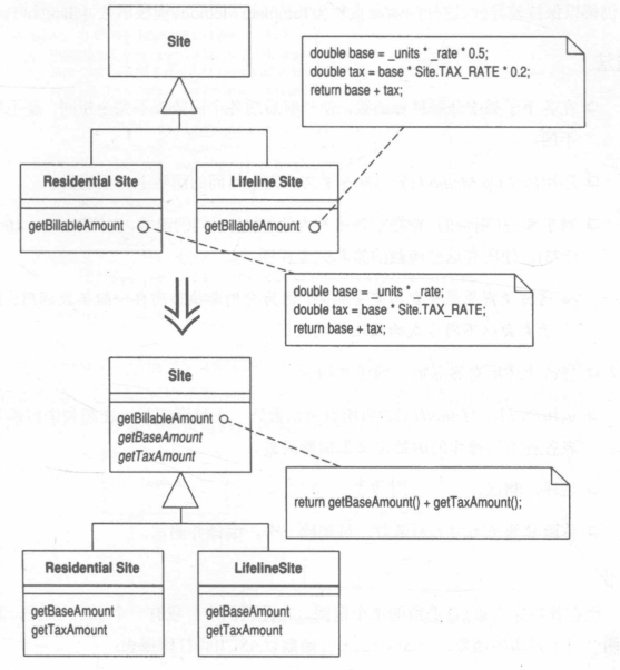 概要”包括三个部分:(1)一句话,介绍这个重构能够帮助解决的问题;(2)段简短陈述,介绍你应该做的事:(3)一幅速写图,简单展现重构前后示例:有时候我展示代码,有时候我展示UML图。总之,哪种形式能更好呈现该重构的本质,我就使用哪种形式(本书所有UML图都根据实现观点而画[Fowler,,UML]。)如果你以前见过这一重构手法,那么速写图能够让你迅速了解这一重构的概况;如果你不曾见过这个重构,可能就需要浏览整个范例,才能得到较好的认识。