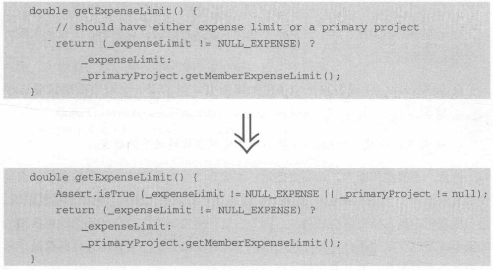 常常会有这样一段代码:只有当某个条件为真时,该段代码才能正常运行。例如平方根计算只对正值才能进行,又例如某个对象可能假设其字段至少有一个不等于null。