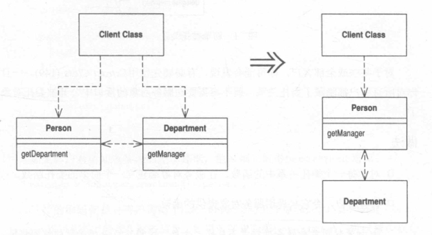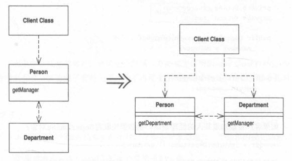 如果你看到用户向一个对象请求另一个对象,然后再向后者请求另一个对象,然后再请求另一个对象……这就是消息链。实际代码中你看到的可能是一长串getThis()或一长串临时变量。采取这种方式,意味客户代码将与查找过程中的导航结构紧密耦合。一旦对象间的关系发生任何变化,客户端就不得不做出相应修改。
