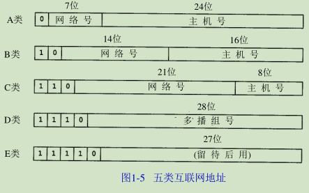 这样做的原因是因为A类和B类地址为主机号分配了太多的空间,可分别容纳的主机数为2^24 -2和2^16 -2。事实上,在一个网络中人们并不安排这么多的主机(各类IP地址的格式如图1-5所示)。由于全0或全1的主机号都是无效的,因此我们把总数减去 2。