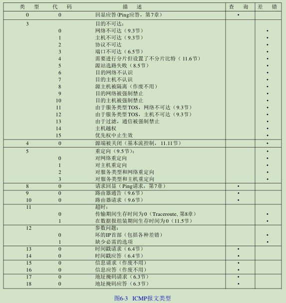 最后,标志字段中有一个比特称作“不分片”位。如果将这一比特置1,IP将不对数据报进行分片。相反把数据报丢弃并发送一个ICMP差错报文(“需要进行分片但设置了不分片比特”,见图6-3)给起始端。在下一节我们将看到出现这个差错的例子。