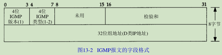 图13-2显示了长度为8字节的IGMP报文格式。