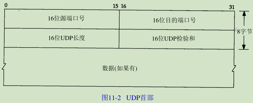 UDP首部的各字段如图11-2所示。