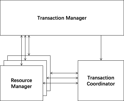 其次,与 XA 的模型类似,我们定义 3 个组件来协议分布式事务的处理过程。