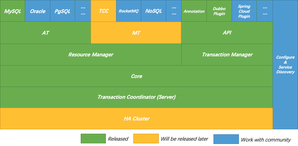 The green part is already open sourced, the yellow part will open source by Alibaba/AntFinancial, the blue part we want co-building with out community: