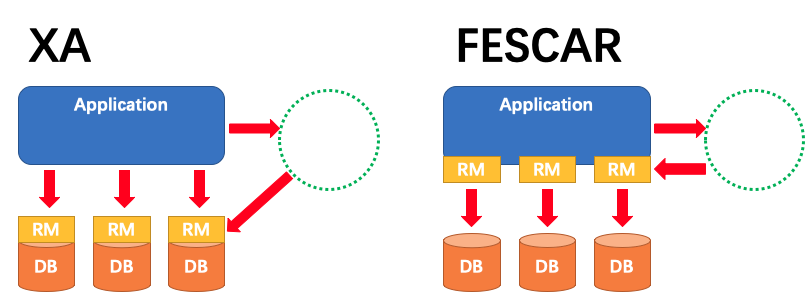 至此,Fescar 的协议机制总体上看与 XA 是一致的。