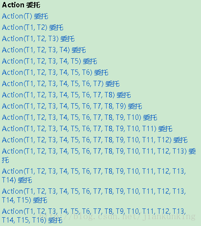 具体形式如下:https://msdn.microsoft.com/zh-cn/library/system.action(v=vs.110).aspx