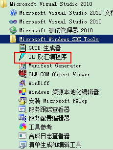 编译代码后,使用 Visual Studio 2010自带的ILDASM.EXE: