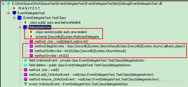 委托 public delegate int delegateAction();在IL中是以类(delegateAction)的形式存在的