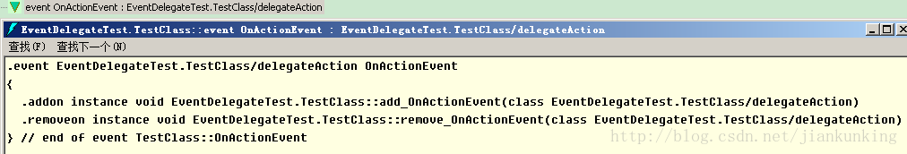 在IL中事件被封装成了包含一个add_前缀和一个remove_前缀的的代码段。