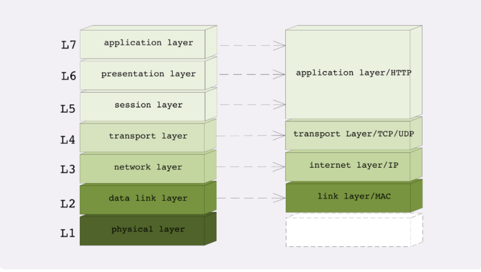 网络分层模型 发表于 2020-03-11 分类于 Network 阅读次数: 本文字数: 194 阅读时长 ≈ 1 分钟 两个网络分层模型:TCP/IP和OSI,一个是四层模型,一个是七层模型,这两者应该如何互相映射或者说互相解释呢? 第一层:物理层, TCP/IP里无对应; 第二层:数据链路层, 对应TCP/IP的链接层; 第三层:网络层, 对应TCP/IP的网际层; 第四层:传输层, 对应TCP/IP的传输层; 第五、六、七层:统一对应到TCP/IP的应用层。 相关文章 一次不接受Elasticsearch官方建议导致的事故 趣谈网络协议 笔记 如何优化Elasticsearch大文档查询? 又一次不接受Elasticsearch官方建议导致的事故 ElasticSearch为什么不能在query阶段直接返回_id,从而避免fetch? 打赏 微信支付 支付宝 本文作者: jiankunking 本文链接: https://jiankunking.com/layered-network-model.html 版权声明: 本博客所有文章除特别声明外,均采用 BY-NC-ND 许可协议。转载请注明出处! 欢迎关注我的其它发布渠道 RSS WeChat