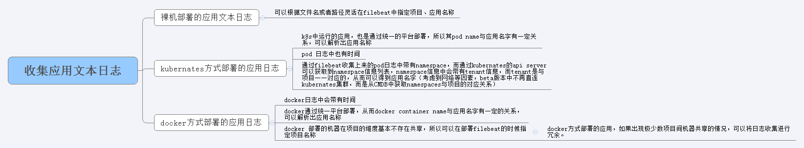 - 文本日志:因为文本日志主要的场景是已经裸机部署的应用,这种场景下,不存在应用自动迁移的情况,所以文本日志的应用名称、实例名称可以在部署的时候打上标签即可。