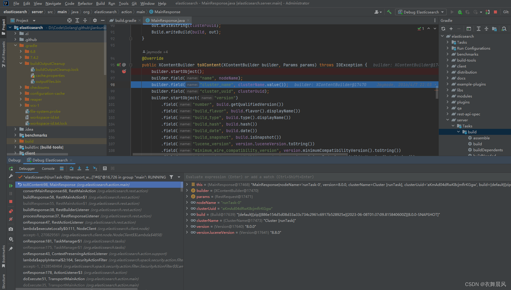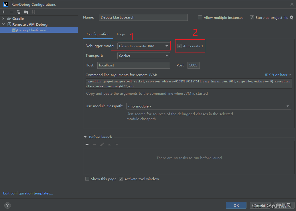 Debug Elasticsearch是idea导入代码后自动有的,但要注意下图红框1、2两处配置